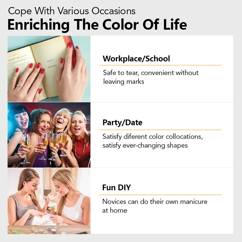 2.They are made of flexible and wearable material in order to fit most nail shapes and sizes.