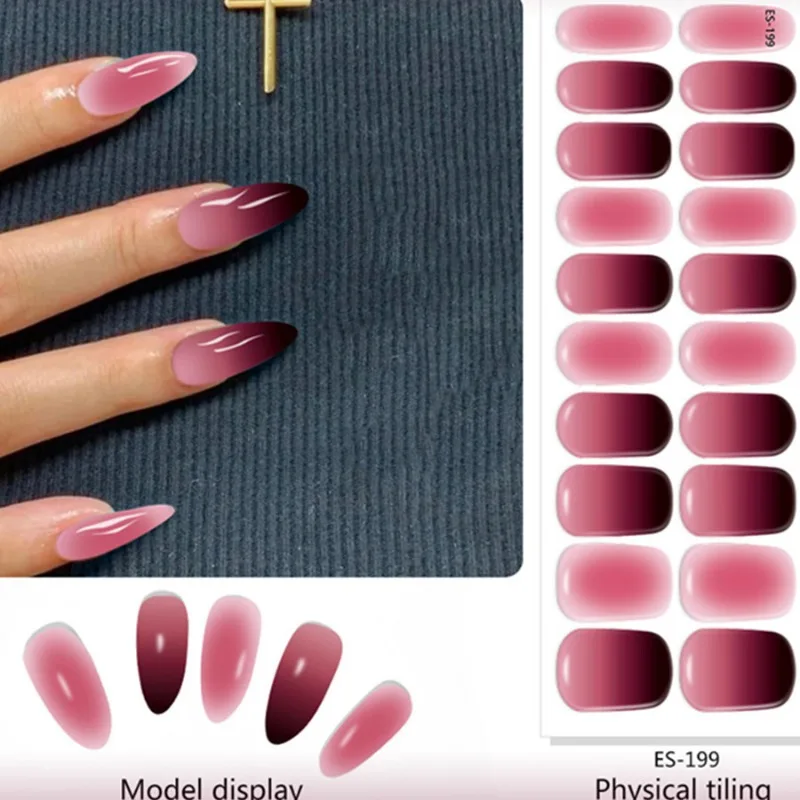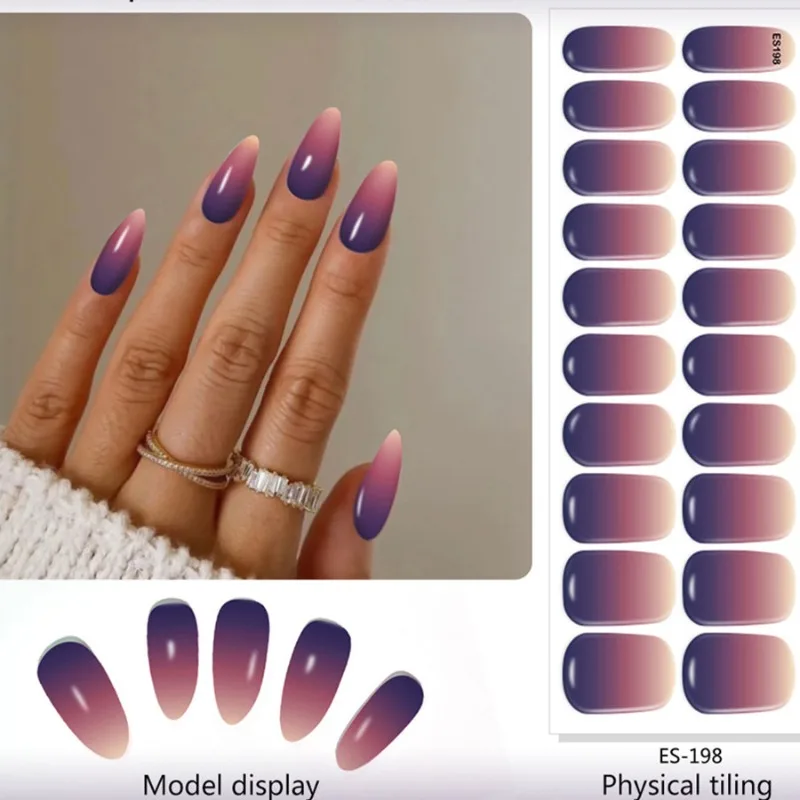 3.After placing them on your nails and curing the remaining 40% with a UV lamp, the gel will completely harden, and the effect will be like applying colorful nail polish in a nail salon.