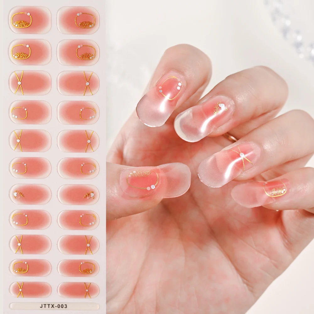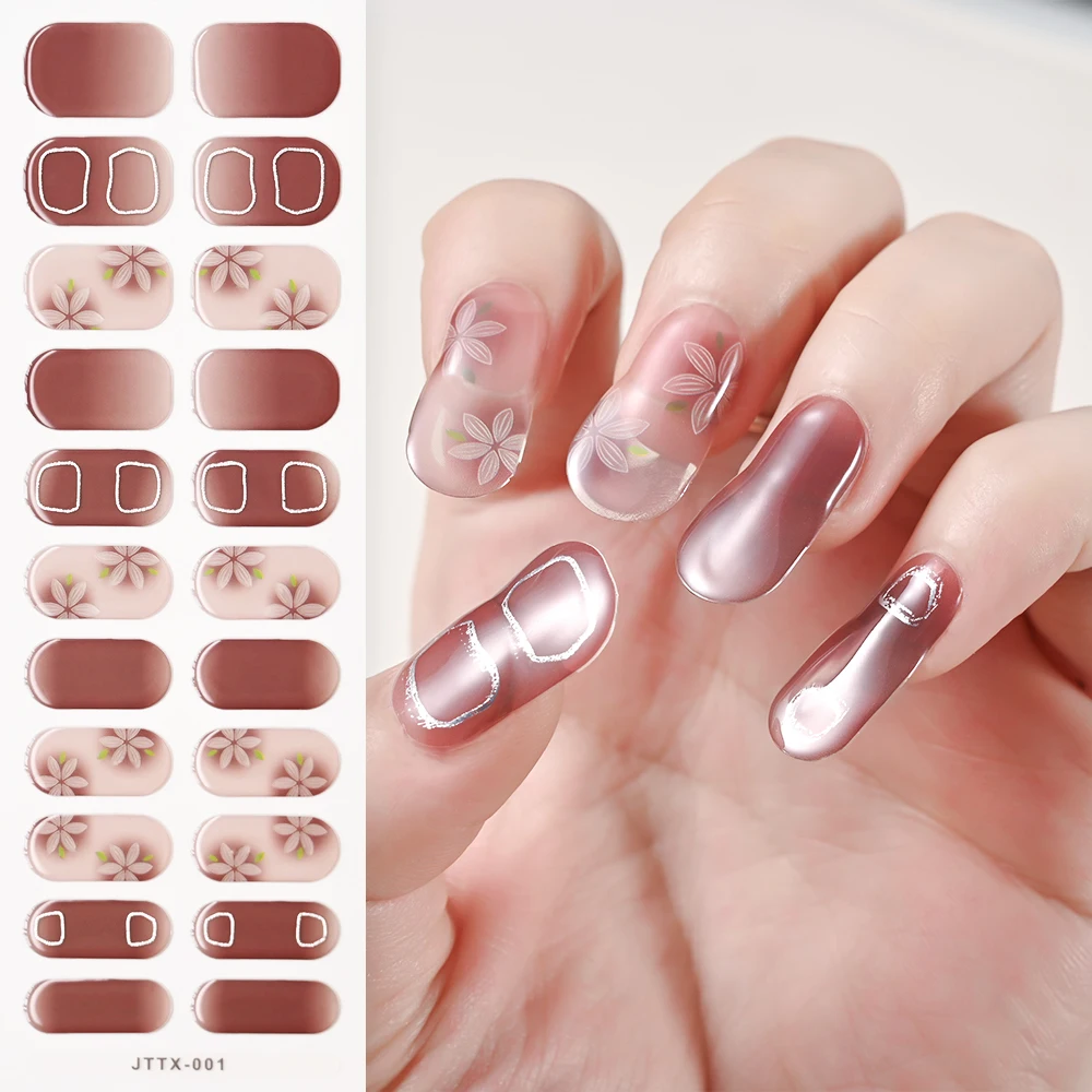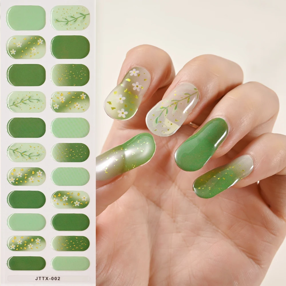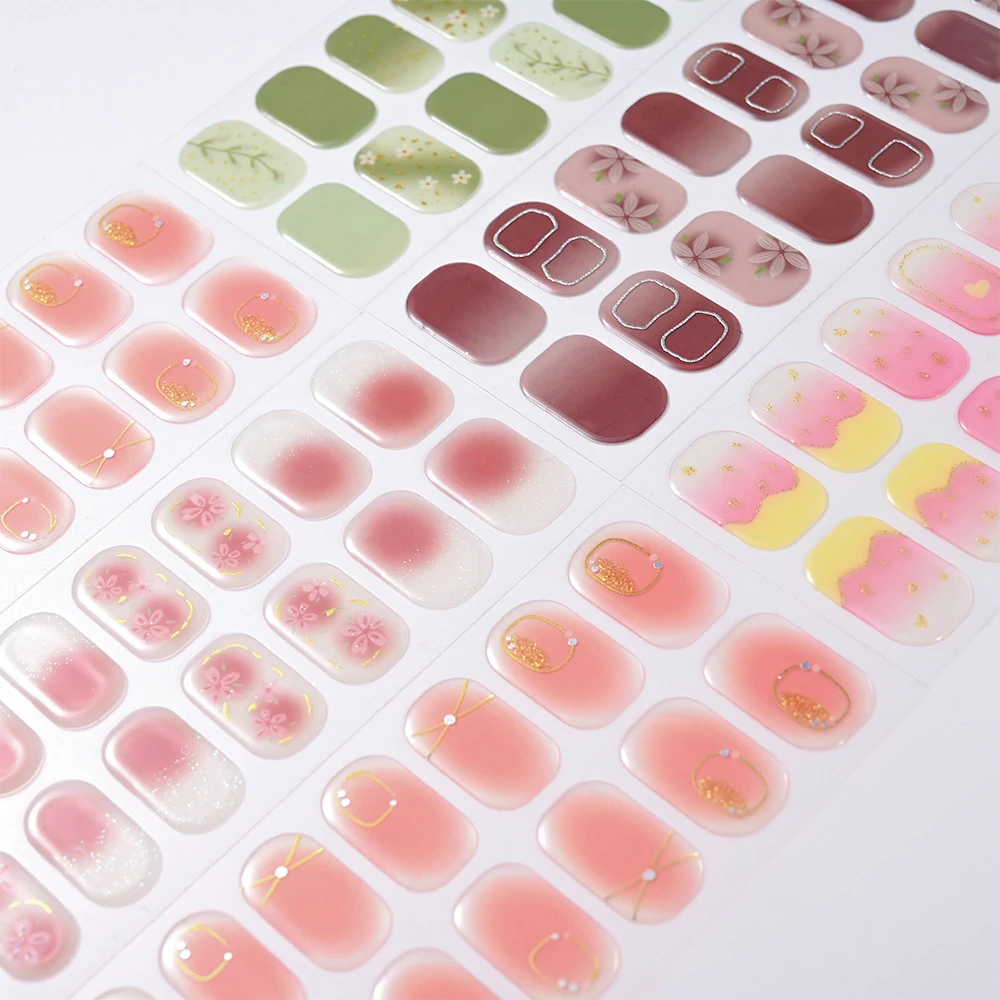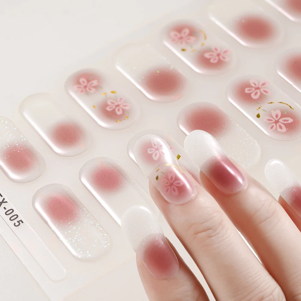 22Tips Semi Cured Gel Nail Wraps 3D UV Gel Nail Stickers Flowers Gradient Color Adhesive Full Cover Designer DIY Manicure Arts &